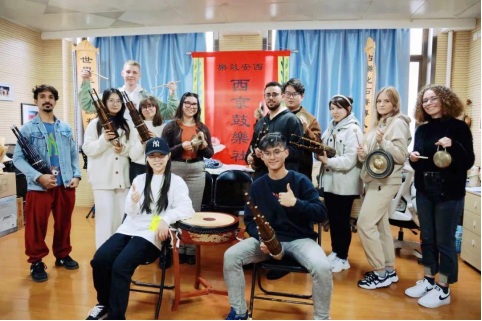 2023年3月,西京學院開設西安鼓樂國際班。來自法國、意大利、約旦、阿曼、沙特阿拉伯、柬埔寨、哈薩克斯坦、烏茲別克斯坦、吉爾吉斯斯坦、塔吉克斯坦、土庫曼斯坦的不同國籍、不同語言、不同膚色的20多名學生,齊聚一堂學習西安鼓樂,感受中華文明的魅力。
