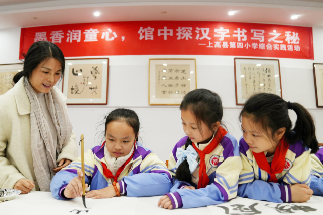 11月26日,江西宜春上高縣第四小學(xué)開(kāi)展“傳統(tǒng)文化潤(rùn)心田”活動(dòng),孩子們走進(jìn)文化館,通過(guò)觀看展覽、與非遺傳承人互動(dòng)、親身參與表演等活動(dòng),零距離感受傳統(tǒng)文化的獨(dú)特魅力。中國(guó)教育報(bào)-中國(guó)教育新聞網(wǎng)通訊員 陳旗海 攝