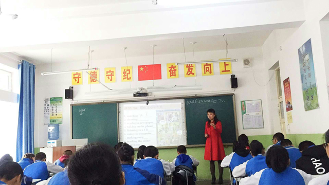 為了讓枯燥的英語(yǔ)課變的生動(dòng)有趣,楊秀英自制教具和課件,課堂上她激情高漲,聲情并茂,深深地吸引著學(xué)生。