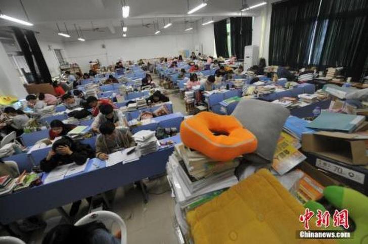 考生們?yōu)榭荚嚾找箞?jiān)守。張斌 攝
