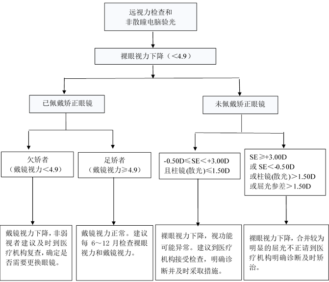 1.對(duì)視力正常,但存在近視高危因素的學(xué)生,建議其改變高危行為,改善視光環(huán)境。