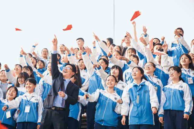 “教育首先是精神成長,其次才成為科學(xué)獲知的一部分。”陳立群在臺江民中從“心靈喚醒”和“精神教育”入手,改變苗鄉(xiāng)孩子的精神面貌,為他們點(diǎn)燃夢想與希望。圖為陳立群和學(xué)生一起舉行“放飛夢想”活動。(新華社記者 謝希瑤/攝)