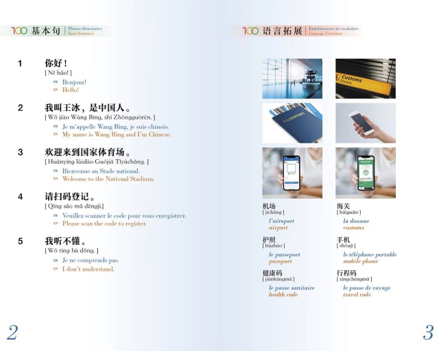 語合中心主任馬箭飛介紹,《冬奧中文100句》通過展示100個中文常用句的基本含義和交際場景,滿足冬奧期間各國代表團在華參賽和生活的基本需求;通過冬奧場館的介紹,體現(xiàn)綠色、共享、開放、廉潔的辦奧理念;通過來自不同行業(yè)的奧運人物故事,體現(xiàn)追求團結(jié)、和平、進步、包容的共同目標(biāo);通過中國文化要素的呈現(xiàn),真實、客觀、生動地展現(xiàn)中國傳統(tǒng)文化之美和當(dāng)代中國發(fā)展。中、法、英三語對照,便于不同母語者使用;配套有聲電子書,可以幫助使用者隨時隨地學(xué)說中文。