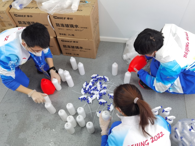 志愿者們傾倒玻璃水