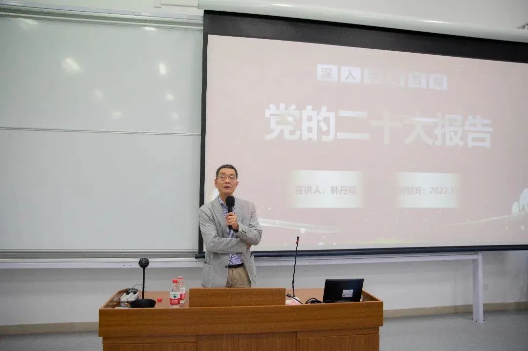 11月8日,廣以副校長、黨總支書記林丹明教授為學(xué)生黨員、入黨積極分子、共青團(tuán)員、入團(tuán)積極分子召開深入學(xué)習(xí)貫徹黨的二十大精神宣講會。他希望同學(xué)們深刻領(lǐng)會黨和國家對青年一代的殷切期望,肩負(fù)起新時代青年的歷史使命,切實(shí)把思想和行動統(tǒng)一到黨的二十大精神上來,努力成為堪當(dāng)民族復(fù)興重任的時代新人。