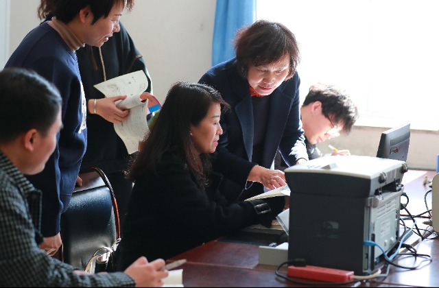 唐景麗和老師在一起進(jìn)行教學(xué)研討