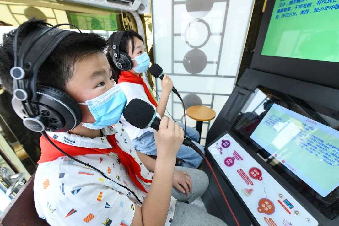 安徽省阜陽市實(shí)驗(yàn)小學(xué)學(xué)生在校園設(shè)立的“朗讀亭”誦讀經(jīng)典,享受讀書和朗讀帶來的快樂。王彪 攝