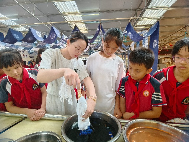二十世紀(jì)五六十年代大量存在的扎染工藝坊,如今又出現(xiàn)在廣西貴港市覃塘區(qū)黃練鎮(zhèn)中心小學(xué),吸引了眾多青少年學(xué)生前往參觀體驗(yàn),感受民族優(yōu)秀傳統(tǒng)工藝的魅力。