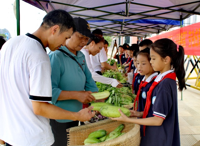 中國(guó)教育報(bào)-中國(guó)教育新聞網(wǎng)訊(記者 歐金昌 通訊員 吳長(zhǎng)奎 朱妮 鄧麗蓉)“賣菜啦!賣菜啦!紅薯葉兩塊錢一把,快來(lái)瞧一瞧!”“奶奶,這是我們自己種的茄子,純天然的,來(lái)看一看吧?!苯?,在廣西鐘山縣鐘山鎮(zhèn)第七小學(xué)的校門口,一聲聲響亮的叫賣聲不絕于耳。原來(lái),這是該校組織開展“七彩種植園”勞動(dòng)成果義賣活動(dòng)。