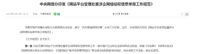 這些涉企網絡侵權信息舉報,網站平臺須重點受理