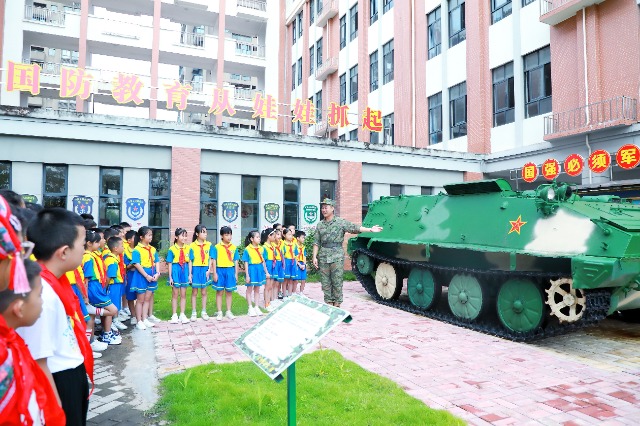 “為什么裝甲車要涂上草綠色?”“裝甲車沒(méi)有窗戶,我們坐在里面怎樣才能看到外面的東西呢?”在欽州市第九小學(xué),國(guó)防教育校外輔導(dǎo)員——?dú)J州軍分區(qū)的解放軍叔叔帶來(lái)國(guó)防教育“開學(xué)第一課”,同學(xué)們聽得津津有味。