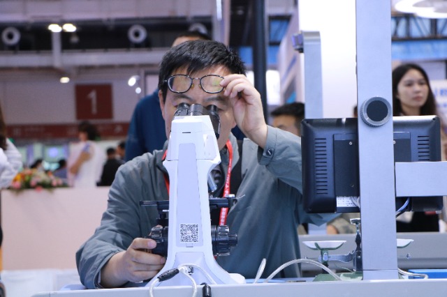 參展人員了解新產(chǎn)品。尹曉軍 攝