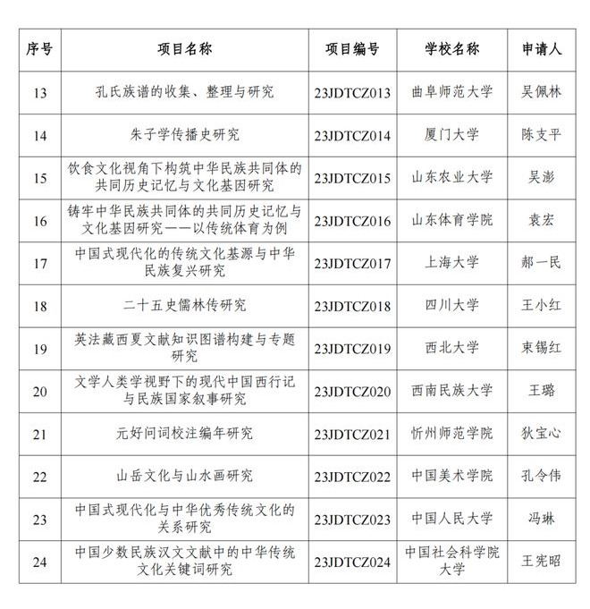 中華優(yōu)秀傳統(tǒng)文化專項(xiàng)課題(A類)立項(xiàng)一覽表