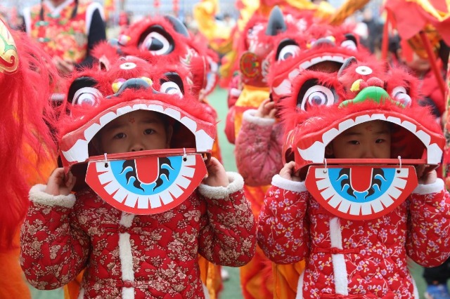 非遺走進幼兒園,龍娃花會過大年,在活動現(xiàn)場,師生共同演繹的小金龍鬧春、舞龍獅、鑼鼓秧歌等特色非遺節(jié)目輪番舞動,年味十足。伴隨著歡快喜慶的鑼鼓和曲樂,孩子們和老師呈現(xiàn)了一個個精彩的節(jié)目,《扭秧歌》《龍獅齊舞》輪番上演,全場喜氣充盈、熱烈非凡,呈現(xiàn)出一派歡樂祥和的節(jié)日氛圍。