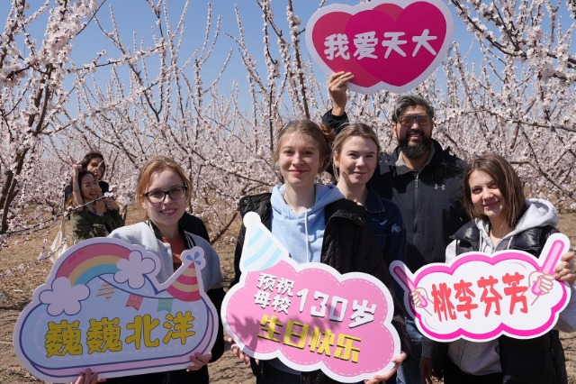 當(dāng)天上午,天津大學(xué)國(guó)際教育學(xué)院的師生抵達(dá)大賈莊村生態(tài)農(nóng)業(yè)產(chǎn)業(yè)園。近百名國(guó)際學(xué)生在“學(xué)農(nóng)導(dǎo)師”帶領(lǐng)下參觀(guān)農(nóng)場(chǎng),了解中國(guó)傳統(tǒng)農(nóng)耕機(jī)具,一起干農(nóng)活,體驗(yàn)松土、剪枝等日常生產(chǎn)勞動(dòng),在學(xué)習(xí)中收獲快樂(lè),在勞動(dòng)中學(xué)會(huì)合作。記者在現(xiàn)場(chǎng)看到,中外師生分組植樹(shù)干勁火熱:他們?cè)谝豢每糜H手種下的樹(shù)苗上掛牌并寫(xiě)上自己的名字,經(jīng)過(guò)一整天的勞作,建立起一片由130棵桃樹(shù)組成的“天大國(guó)際友誼林”,將自己對(duì)中國(guó)、對(duì)母校的熱愛(ài)融入這片“花堤藹藹”,預(yù)祝天津大學(xué)明年建校130周年生日快樂(lè)。