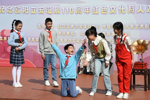 活動現(xiàn)場,中共四大紀念館“小紅花”志愿講解員李陳靜雨進行宣講,上海市學生藝術團虹口區(qū)青少年活動中心戲劇團帶來了情景朗誦《留聲機》,以一臺“留聲機”為主線開啟了一段新時代少先隊員們與魯迅先生跨越時空的相遇,深切表達了對魯迅先生的崇敬與追思,上海評彈團團長高博文帶來的評彈表演《王孝和·黨的叮嚀》,傳統(tǒng)曲藝結合紅色故事贏得陣陣掌聲,龍華烈士陵園代表向虹口師生代表贈送由歐陽立安的母親陶承創(chuàng)作的書籍《我的一家》,希望這本具有收藏價值的書能成為革命英烈們紅色基因的傳承,帶給少年兒童更多的精神力量。