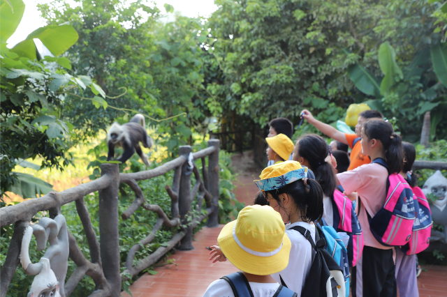 崇左市小學(xué)生在白頭葉猴研學(xué)實(shí)踐基地開(kāi)展研學(xué)活動(dòng) 崇左市教育局供圖