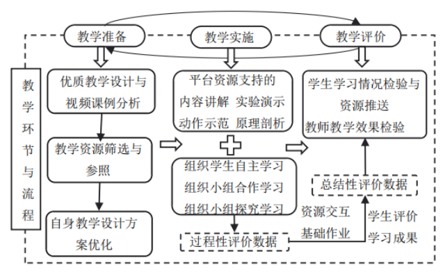 2.教學實施。運用平臺資源進行教學內容講解、實驗演示、動作示范、原理剖析等教學活動。組織小組探究學習,實現(xiàn)教師、學生、數(shù)字資源的交互教學。提供學習支架,引領學生開展自主、合作學習。