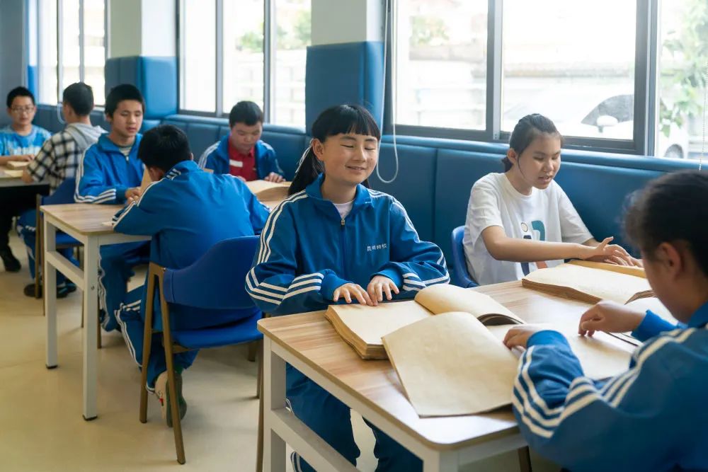 4月15日,昆明市盲啞學(xué)校的盲生們在學(xué)校圖書室閱讀盲文書。(新華社記者 陳欣波 攝)