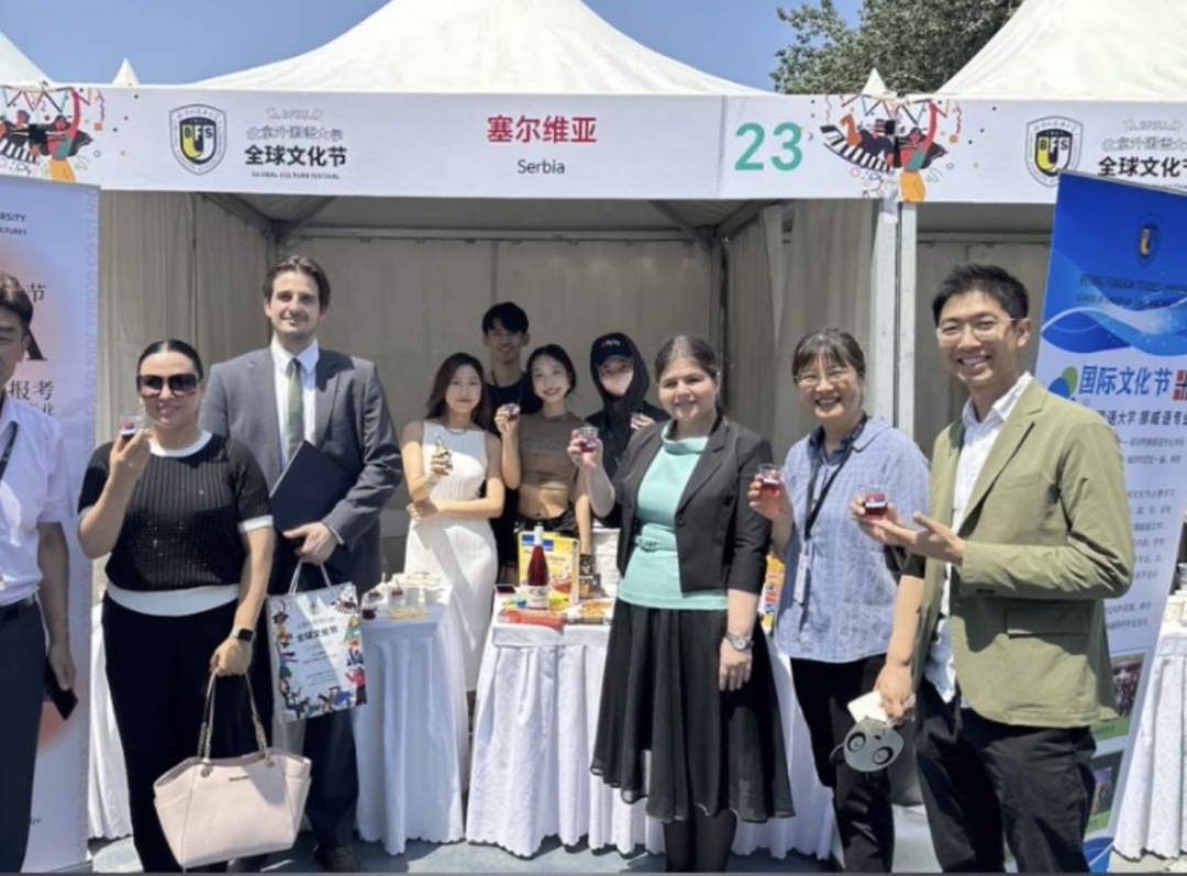 塞爾維亞駐華大使瑪婭·斯特法諾維奇參加北外“全球文化節(jié)”。