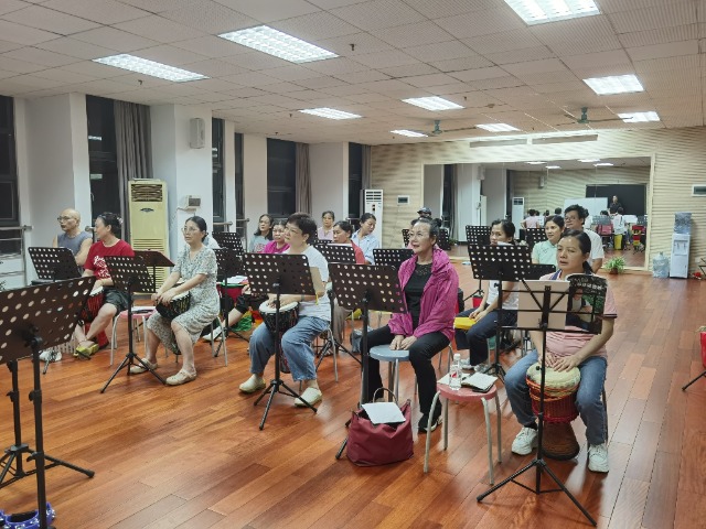 老年學(xué)員參加非洲鼓班 學(xué)校供圖