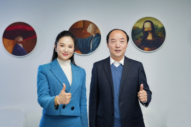 美行思遠總裁劉冬冬(左)與新航道國際教育集團董事長胡敏(右)合影