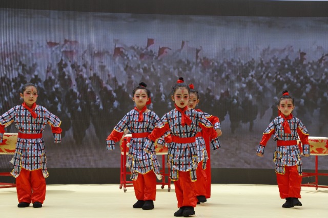 安寧區(qū)實(shí)驗(yàn)幼兒園幼兒表演節(jié)目——繪本劇:《花木蘭》。尹曉軍 攝