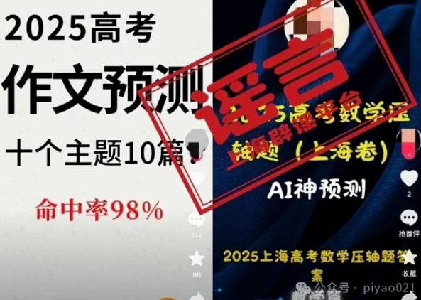 上海辟謠平臺(tái)調(diào)查發(fā)現(xiàn),“AI押題”的真相是偷換概念或“標(biāo)題黨”,其本質(zhì)是部分自媒體為吸引眼球或推銷自己的有償服務(wù)而進(jìn)行的虛假營銷,誤導(dǎo)考生和家長。