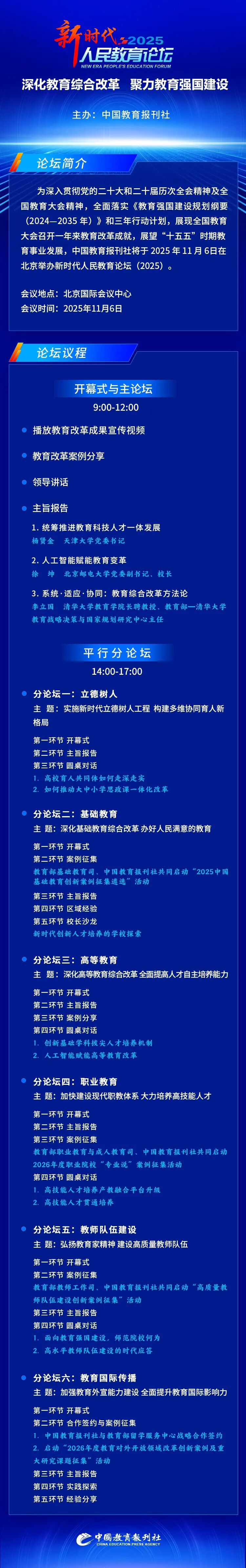 作為中國(guó)教育報(bào)刊社重點(diǎn)打造的年度高端論壇,新時(shí)代人民教育論壇旨在緊扣教育的政治屬性、人民屬性和戰(zhàn)略屬性,充分發(fā)揮教育主流媒體的平臺(tái)與渠道優(yōu)勢(shì),致力于——