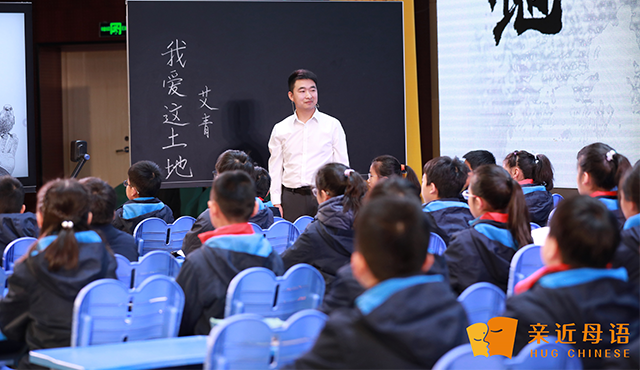 廣西柳州市文韜小學(xué)語文教師王憲德現(xiàn)場執(zhí)教詩歌微課《我愛這土地》。親近母語供圖