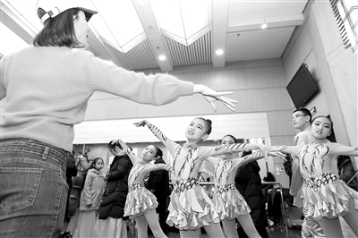 近日,北京市豐臺(tái)區(qū)少年宮慶祝建宮六十周年教育教學(xué)成果展舉行。圖為表演節(jié)目的孩子們?cè)谧錾吓_(tái)前的練習(xí)準(zhǔn)備。見習(xí)記者 單藝偉 攝