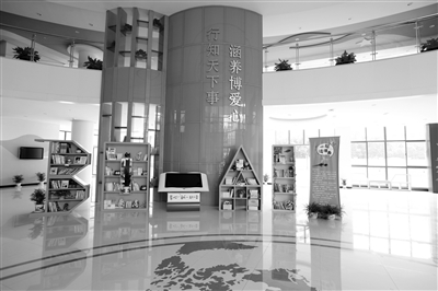 2015年,該校博愛校區(qū)改建到位,新校園以“圖書館中的學(xué)?!睘橹黝}進(jìn)行整體規(guī)劃設(shè)計(jì)?!拔覀?cè)O(shè)想打造一個(gè)讓孩子隨時(shí)隨手都能拿到書、看到書、借到書的學(xué)校,圖書館就在孩子的身邊?!毙iL巫惠群說,閱讀是博愛小學(xué)的信仰,好書遍布校園的每個(gè)角落。