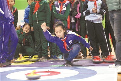 圖2:1月20日,學(xué)生在比賽中擲冰壺球。當(dāng)日,北京市第二屆青少年陸地冰壺邀請(qǐng)賽舉行,16所學(xué)校的代表隊(duì)參加了比賽,體驗(yàn)冰壺運(yùn)動(dòng)的樂(lè)趣,引導(dǎo)青少年關(guān)注2022年北京冬奧會(huì)。