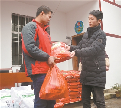 1月28日,農(nóng)歷小年,陜西省鎮(zhèn)巴縣大池鎮(zhèn)茶園河村彌漫著喜氣,跟隨掛職單位縣科技局,鄒海洋挨家挨戶(hù)給村民們送上米、鹽等生活必需品,并提前送上新春祝福。
