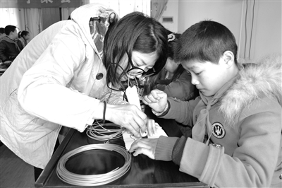 上圖為孩子們?cè)诶蠋熤笇?dǎo)下上手操作。