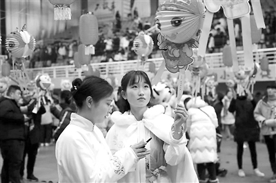 左圖 武漢職業(yè)技術(shù)學(xué)院在開學(xué)伊始應(yīng)景地組織了“鬧元宵,過佳節(jié)”游園活動(dòng),近萬名師生在游園活動(dòng)中體驗(yàn)中國傳統(tǒng)文化之美。