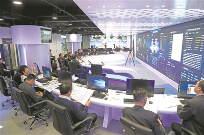 中央編輯部指揮大廳的大屏幕滾動(dòng)著當(dāng)日的輿情熱點(diǎn),移動(dòng)端各平臺(tái)的閱讀量,之前分散在各個(gè)編輯部的數(shù)據(jù)、新聞、信息,全部匯聚在一塊2.36米乘以12米的巨大屏幕上,一目了然。