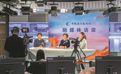 圖③ 中國(guó)教育報(bào)刊社融媒體特別報(bào)道“兩會(huì)E政錄”的直播現(xiàn)場(chǎng)。