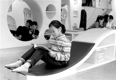 圖一 上海市適存小學學生放學后在學校圖書閱覽室閱讀。