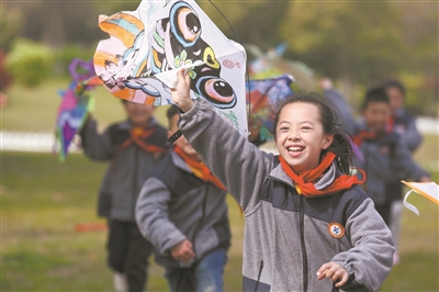 3月28日,小學(xué)生在放飛自己繪制的風(fēng)箏。當(dāng)日,江蘇省徐州市鼓樓區(qū)白云山小學(xué)開(kāi)展 “擁抱自然,放飛夢(mèng)想”主題研學(xué)活動(dòng),學(xué)生們走出校園,與大自然親密接觸,放飛繪有各種夢(mèng)想圖畫的自制風(fēng)箏,感受家鄉(xiāng)的美景,享受童年的快樂(lè)。