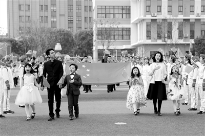 近日,安徽省淮北市首府實驗小學(xué)師生參加唱愛國歌曲快閃活動。當(dāng)日,伴隨著《我和我的祖國》的旋律,該校舉行“千人同唱愛國歌曲”快閃活動,全體師生用歌聲唱出對祖國的熱愛與祝福。