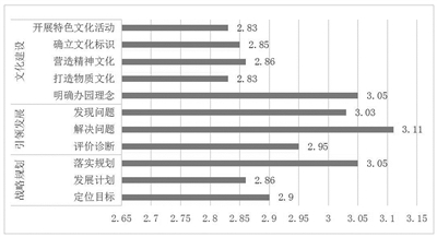 園長價(jià)值領(lǐng)導(dǎo)素養(yǎng)和教育教學(xué)素養(yǎng)較為薄弱。在三大核心專業(yè)素養(yǎng)中,園長組織管理素養(yǎng)尚佳,能夠較好駕馭園所的法務(wù)與安全管理以及財(cái)務(wù)和物資配置,但是價(jià)值領(lǐng)導(dǎo)素養(yǎng)不足,缺乏園所文化建設(shè)和戰(zhàn)略引領(lǐng)能力。園長對(duì)教育教學(xué)素養(yǎng)最不自信,在教職工發(fā)展規(guī)劃、招聘選拔制度和完善薪酬福利體系上表示困難,在引導(dǎo)園所的課程改革與創(chuàng)新上尤為不足。