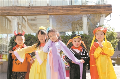 近日,《西游記》里各路“神仙”和“妖怪”齊聚中華女子學(xué)院附屬幼兒園。吹滅火焰山火苗(左圖),眾“神仙”齊力降妖(下圖),心無雜念打坐(右圖)……唐僧師徒四人在西天取經(jīng)的路上,練就眾多“本領(lǐng)”。據(jù)了解,這是該園大班幼兒精讀兩周《西游記》后,與教師一起創(chuàng)編并將熟悉的經(jīng)典故事展現(xiàn)給全園幼兒的活動。李洋 唐彬 攝