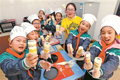 值得一提的是,按照“幸福家政”課程的要求,每個年級的學(xué)生每學(xué)期都要學(xué)會做一道菜。6年下來,每個孩子至少能掌握30項家務(wù)技能、學(xué)會烹飪12道菜肴。