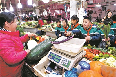 “數(shù)學(xué)課上,學(xué)生剛學(xué)過元、角、分的知識,掌握了各單位之間的轉(zhuǎn)換?!睅ш牻處熤x靜薇介紹說,體驗買菜不僅能鞏固所學(xué)的數(shù)學(xué)知識,還能和“幸福家政”課程有機(jī)融合在一起,增強(qiáng)學(xué)生的人際交往和動手能力。