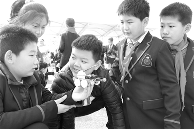 日前,山東省棗莊市實(shí)驗(yàn)小學(xué)舉辦了第三屆校園科技節(jié)活動(dòng)。孩子們用廢舊材料做成的一件件新穎別致的小發(fā)明和小制作吸引了眾人眼球,充分體現(xiàn)了他們動(dòng)手動(dòng)腦的能力和創(chuàng)新意識(shí)。圖為一名學(xué)生制作的“坦克”引起了其他同學(xué)的興趣。