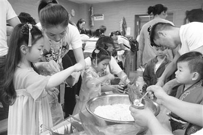 近日,2019溫州市“共亞運(yùn)、同發(fā)展”系列活動(dòng)暨青少年龍舟文化傳承活動(dòng),在溫州市甌海區(qū)第二幼兒園舉行。當(dāng)天的活動(dòng)有非遺文化展示及民俗活動(dòng)體驗(yàn),旱龍舟比賽、包粽子(圖①)、點(diǎn)朱砂(圖②)、擊鼓(圖③)等活動(dòng)讓幼兒親身體驗(yàn)中國端午民俗魅力。賈令廚/文 張雷 邱小小/攝