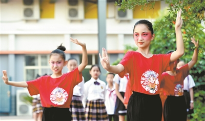6月11日,在石家莊市裕華西路小學(xué),學(xué)生在進(jìn)行表演前的練習(xí)。當(dāng)日,河北省石家莊市裕華西路小學(xué)舉辦“弘揚(yáng)戲曲藝術(shù) 傳承經(jīng)典國(guó)粹”為主題的校園戲曲節(jié)活動(dòng),學(xué)生通過(guò)演繹經(jīng)典戲曲選段、戲曲文化社團(tuán)展示等形式,呈現(xiàn)戲曲特色課程的學(xué)習(xí)成果。新華社發(fā)(張曉峰 攝)