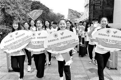 7月11日,江蘇師范大學(xué)大學(xué)生志愿者踏上赴邳州鄉(xiāng)村小學(xué)支教征程。當(dāng)日,江蘇省徐州市舉行大學(xué)生志愿者暑期支教活動(dòng)出征儀式,來(lái)自江蘇師范大學(xué)音樂(lè)學(xué)院的32名大學(xué)生前往邳州市6所鄉(xiāng)村小學(xué)少年宮開(kāi)展支教活動(dòng)。蒯創(chuàng) 攝