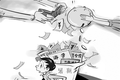 家長(zhǎng)們童年時(shí)質(zhì)樸的暑假已成歷史,仿佛只有忙著在假期幫孩子追成績(jī)、長(zhǎng)見識(shí)、增技能,靠金錢堆砌出來(lái)的假期才過(guò)得“有意義”。調(diào)查顯示,每小時(shí)收費(fèi)1000元的英語(yǔ)課、4萬(wàn)多元的游學(xué)夏令營(yíng)、數(shù)千元的繪畫輔導(dǎo)班,網(wǎng)上頻頻曝出的家長(zhǎng)為孩子報(bào)名參加各種項(xiàng)目的高額消費(fèi)賬單讓不少人大為驚訝,放假要花的錢居然比上學(xué)的時(shí)候更多。課程培訓(xùn)、興趣輔導(dǎo)、出國(guó)旅游以及各種相關(guān)購(gòu)物花銷讓不少家長(zhǎng)頭疼不已。